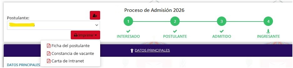 Al finalizar esta etapa su estado del PROCESO DE ADMISIÓN 2026 pasará a ser “POSTULANTE”